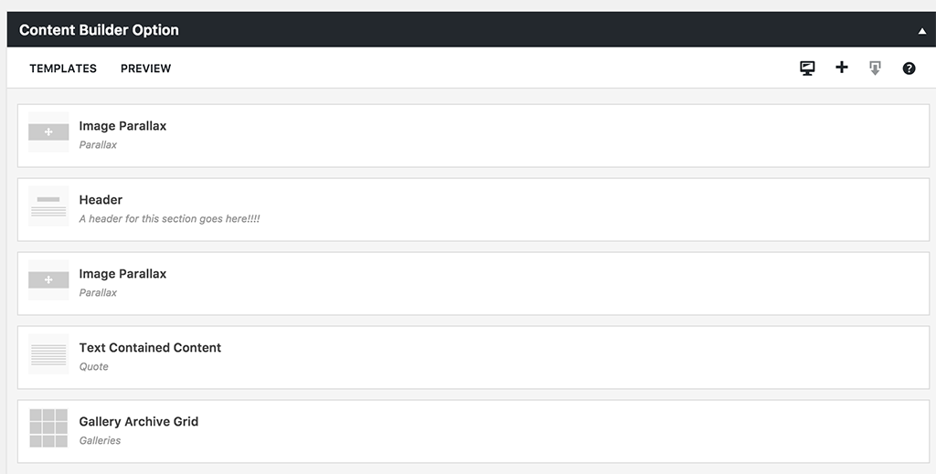 To be able to add new rows that can split into columns and then add content types (image, header, paragraph) within each column that have predefined styles/containers/templates and all the editor has to do is fill out the form and they won't screw with anything else and it sticks it all in the content body piece. With the screenshot I've attached, you could drag each content type into different rows/columns and reorder at will.