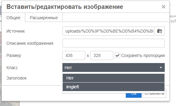 Настроил tinyMCE что бы можно было выбирать класс для картинки.
