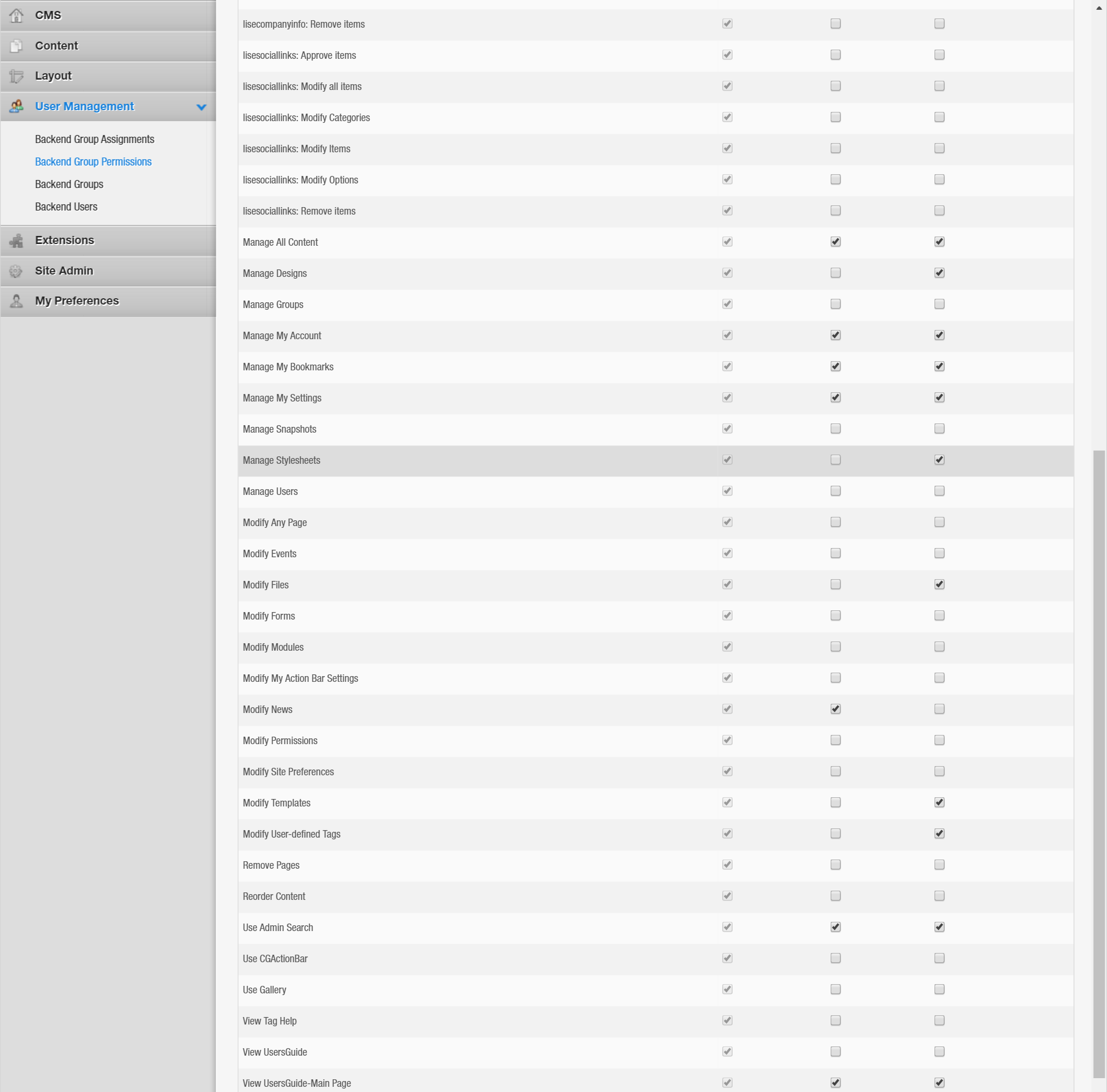 And what's the difference between modify & manage stylesheets b/c modify is there & checked off.