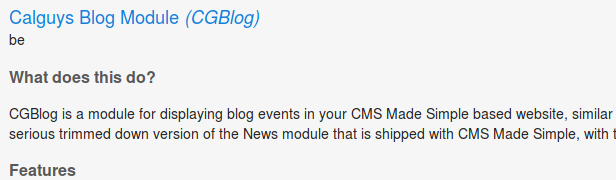 i am using the latest Version of CMS Made Simple (CMS Made Simple™ 2.2.3.1 “Happy Adventure”) and the latest Version of CGBlog (1.15.4) on PHP 5.4.45-0+deb7u11.