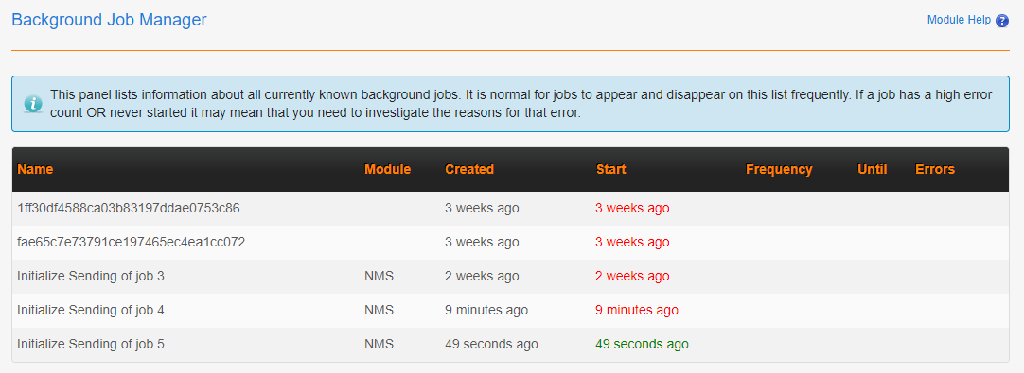 - the Background Jobs Manager where the Start entry is now listed in in red, as nn minutes ago.