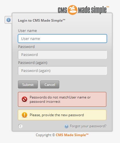 For questions and problems with the CMS core. This board is NOT for any 3rd party modules, addons, PHP scripts or anything NOT distributed with the CMS made simple package itself.