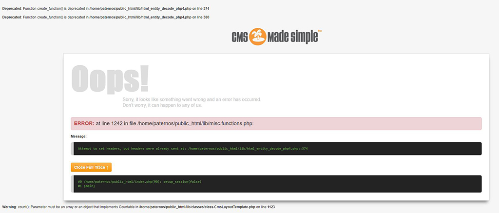 What version of CMSMS are you using, and what version of PHP? Did the PHP version change recently?