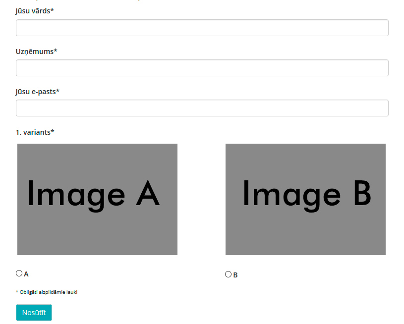 I am building a form with 40 questions. For each question there are 2 or 3 pictures and accordingly radio buttons A B or C, so that the user can choose one he likes best, and I get the results on e-mail. Getting the form to work is all done, but the last thing is, if it is possible and how do I add pictures in this form?