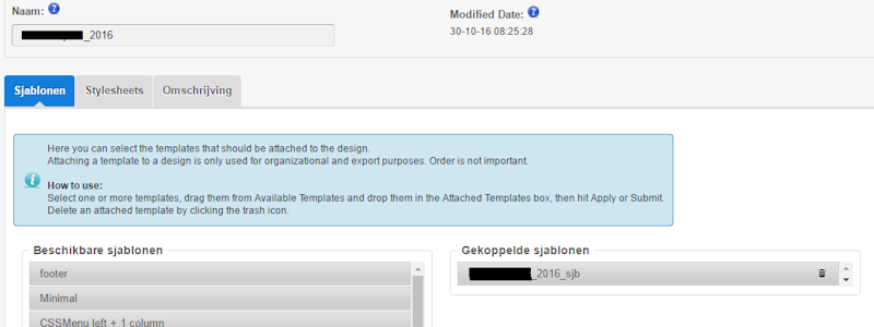 Daarna het juiste sjabloon gekoppeld: