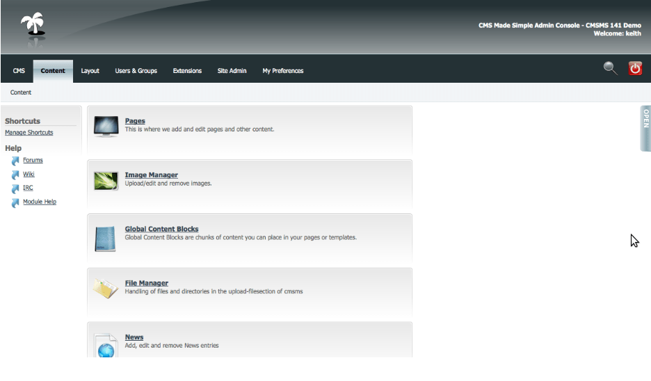 The one with the menu on the left is a newer version of cms made simple, hopefully that is the one you installed and is 2.2.2 or 2.2.3.