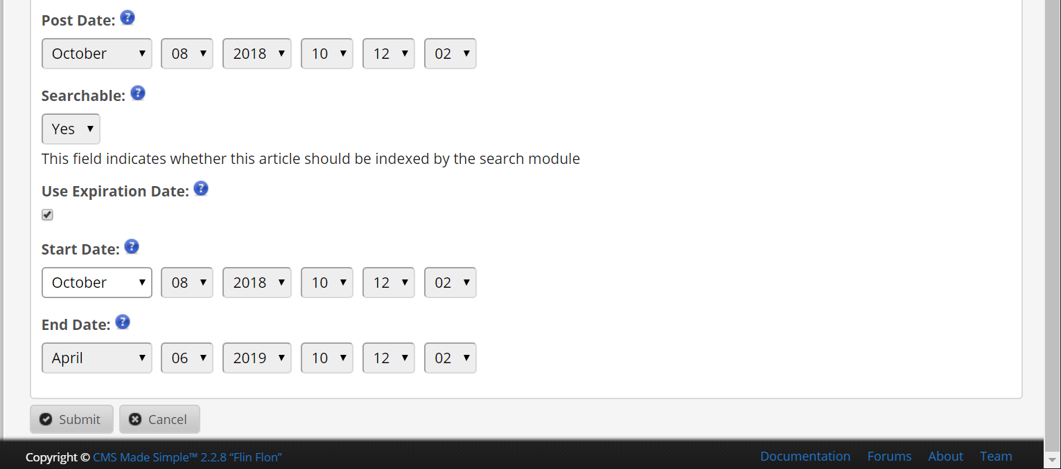 In the news module, the date fields are dropdowns, so how are you entering them in a particular pattern?