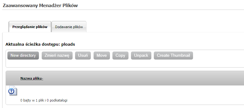 Problem polega na tym że w Zaawansowany Menadżer Plików jest źle dopisana ścieżka i nie mogę dodawać plików do strony.